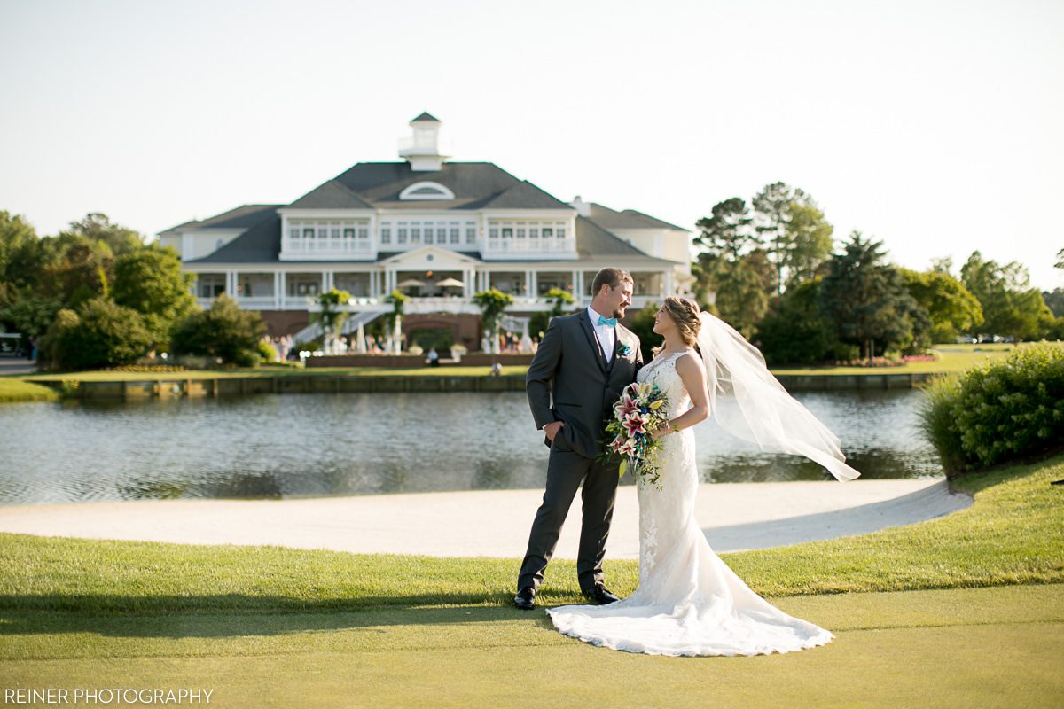The wedding ceremony was held right outside the clubhouse with the beautiful golf course and lake as a backdrop. The weather was great that day, so everyone was comfortable in the spring time sun watching this beautiful couple getting married. There are some great photo locations around Baywood, so with the help of their event coordinator Stephanie and her golf cart driving skills, we were able to make it to all of these great spots for their photos and back in time for them to get introduced into their reception. Overall, it was a wonderful wedding day from start to finish, just keep scrolling to see our favorite pictures from their day.