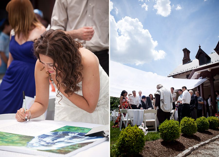 Danielle and Mike signing their Ketubah, that’s my view on the left, while Genava got the more pulled back creative shot on the right.