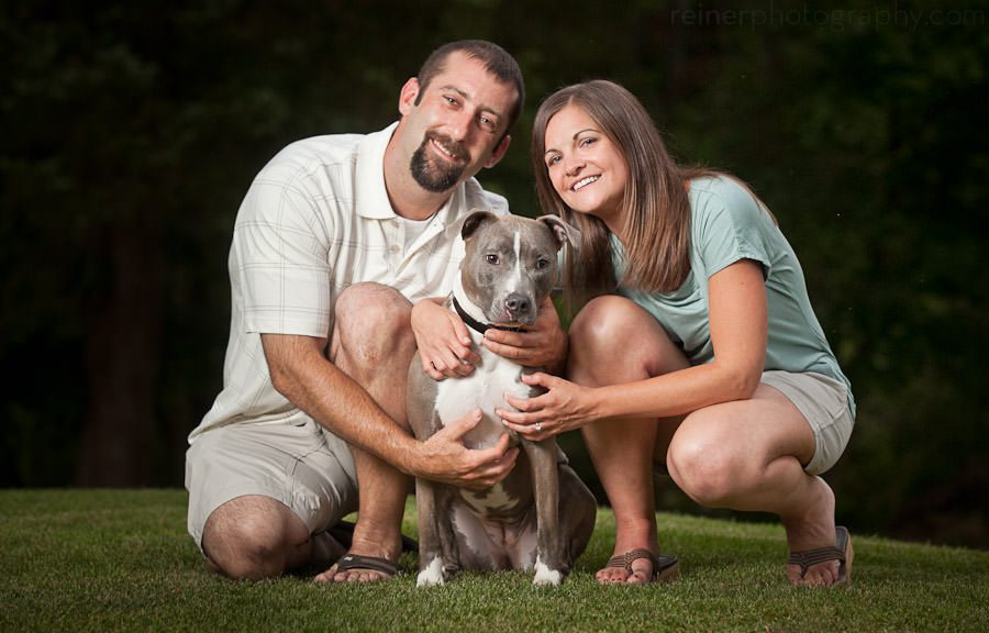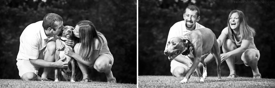 Recently we traveled out to Quakertown, PA for an engagement photography session with Kim and Gil. We actually decided to do the photography session very quickly at their house because their was a thunderstorm rapidly approaching and we figured we should get some photos before the rain hit. We walked around their yard and found some interesting little locations, then decided to get some “family photos” with their amazing dog, Cami.