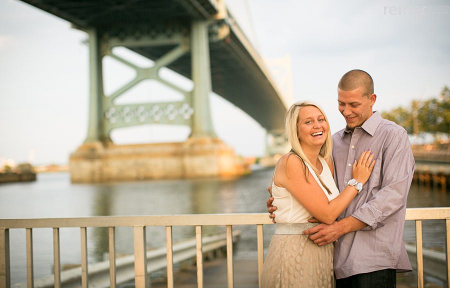 We kicked off Rachael and Steve’s engagement session in South Philadelphia at the newly renovated Race Street Pier. Rachael really wanted some photos at the pier with the Ben Franklin Bridge in the background.