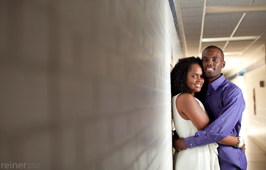 Summer and Anton were highschool sweethearts, so it made perfect sense to do their engagement photography at their former high school in Aston, PA. We had a great time wondering the halls, and Summer brought some excellent props to make their engagement session really unique.