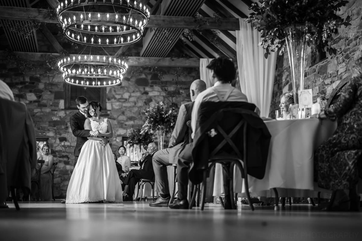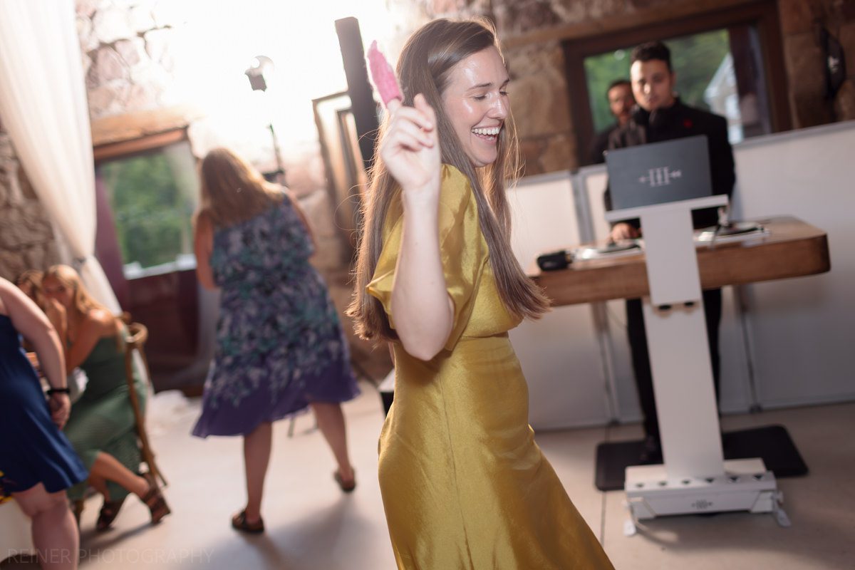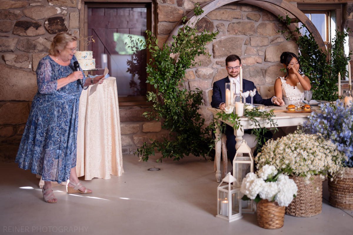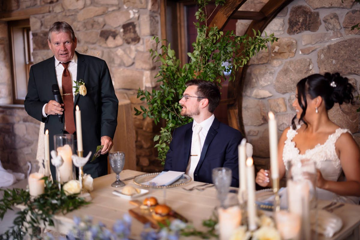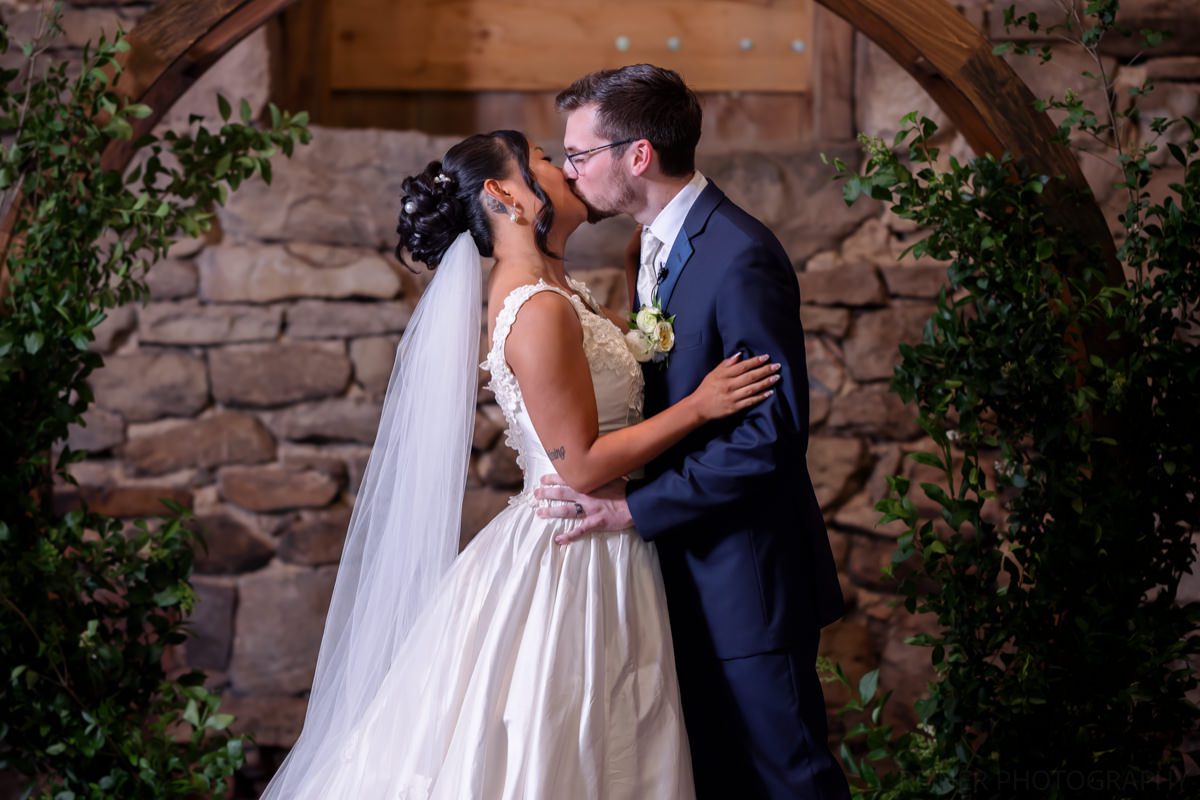 With the heat cranking, the ceremony got moved into the barn. Moody, dim, and definitely not ideal lighting conditions for photos. Curveball? Maybe. But I had my strobe from portraits ready to go, plugged it into the wall, and lit it up.