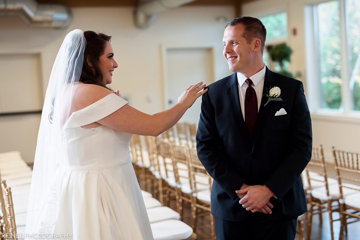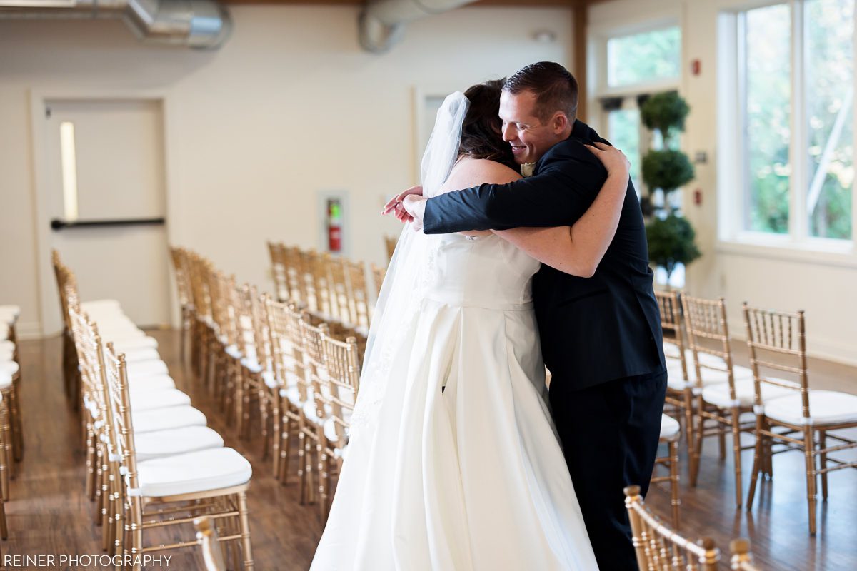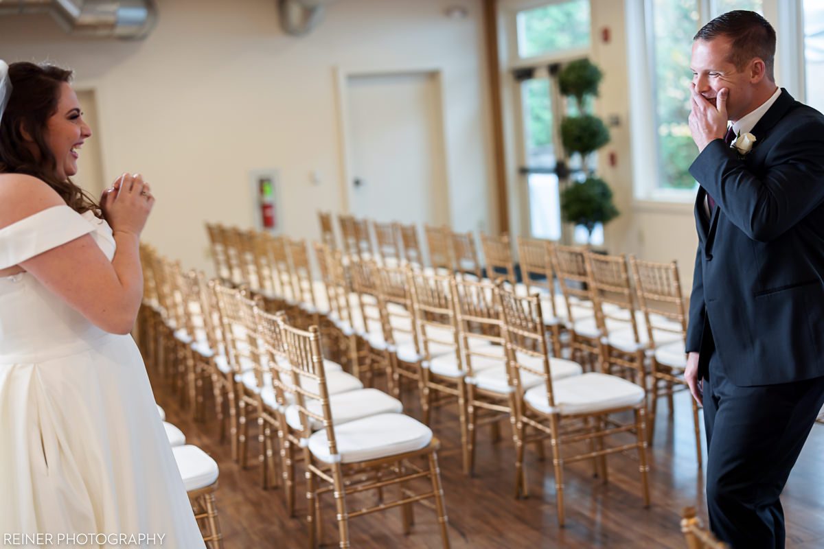 We started the photography coverage at this wedding with Victoria and Mark’s first look. Mark’s mom led him into the room while he kept his eyes shut, so that he wouldn’t see Victoria. After that, we had plenty of time before their ceremony to do all of their portraits and group shots.